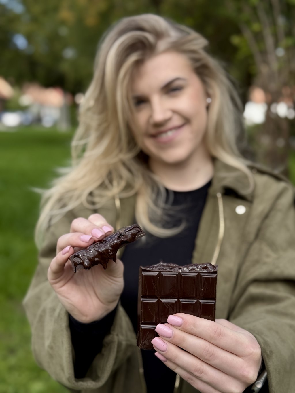 Hezky se na chvíli zastavit, udělat si pohodlí a vychutnat si naši prémiovou čokoládu, která se nádherně rozplývá na jazyku. 🤤 Ta jemná lahodná chuť se postará o to, že se ve vteřině všechny tvoje starosti rozplynou a tvé chuťové pohárky budou v sedmém nebi. Věř mi, že ty si takové hýčkání zasloužíš.