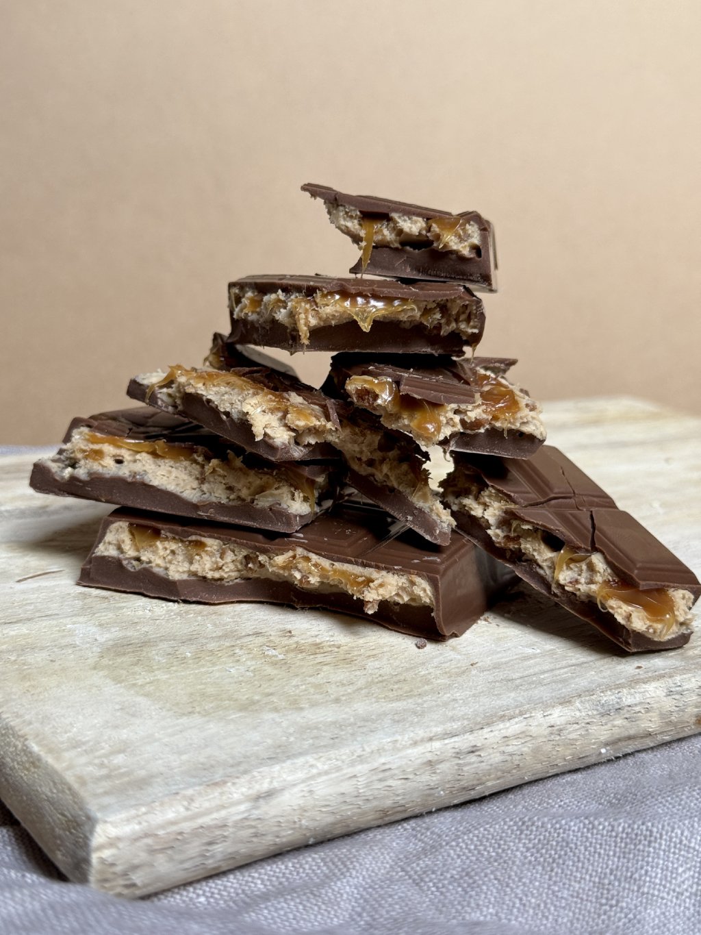 Jen si to představ, jak si uděláš chvilku pro sebe a dáš si tuto lahodnou sametovou čokoládu nabušenou hromadou karamelového krému a křupinek.🤤