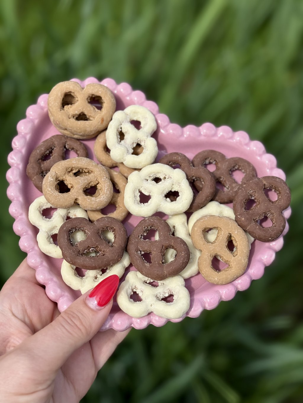 - Preclíky v čokoládě: mléčná čokoláda, slaný karamel