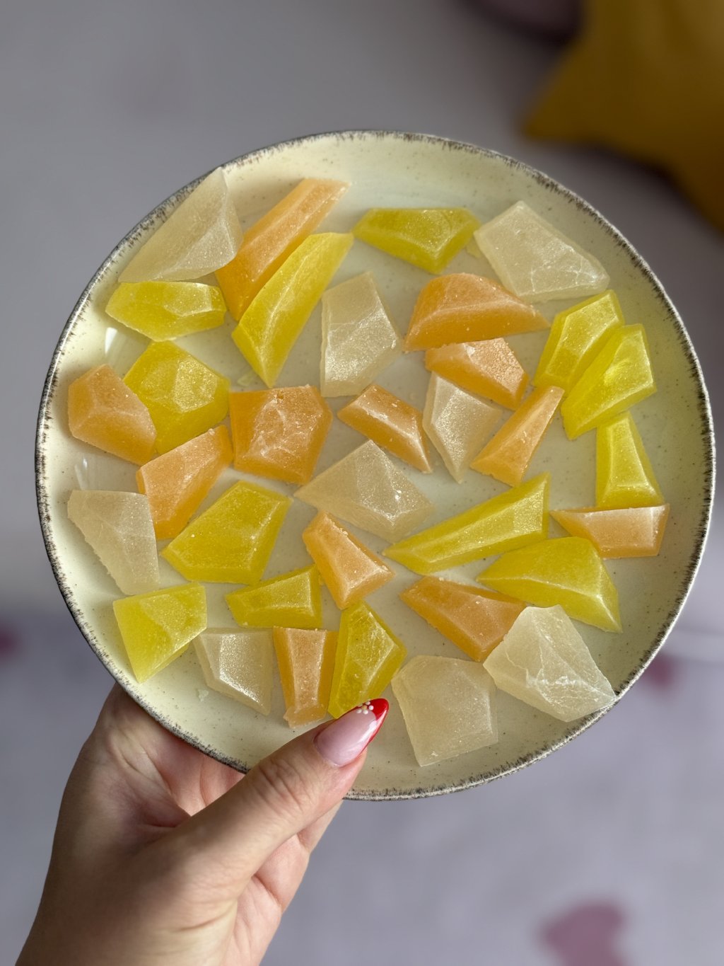 - Jedlé krystaly - příchutě: jablko, pomeranč, třešeň, borůvka