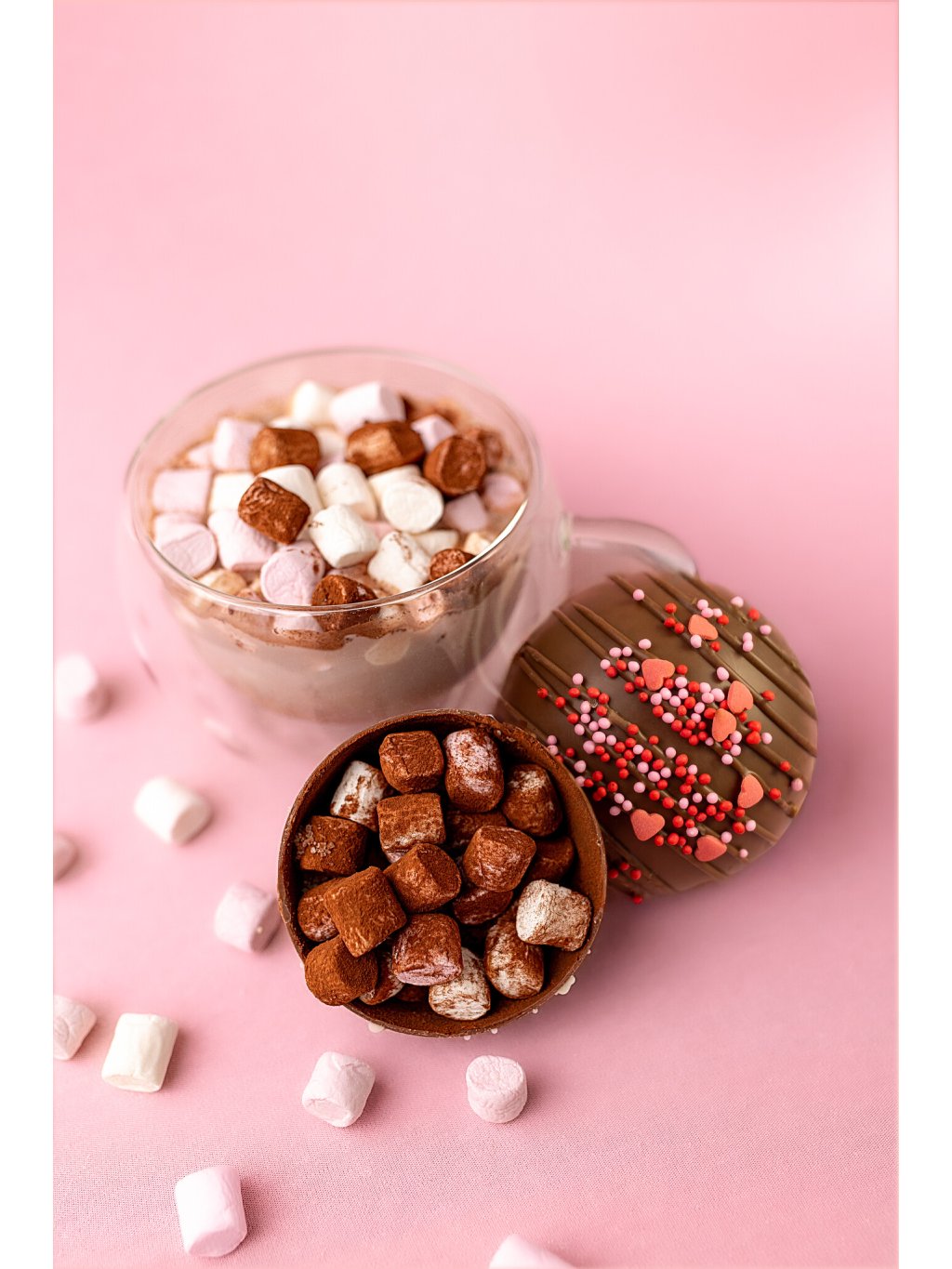 1 ks Čoko bomba s marshmallow - mléčná čokoláda se srdíčky