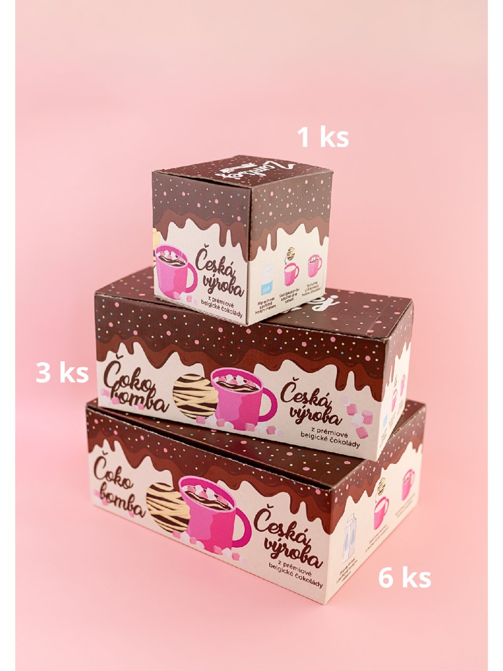 Balení obsahuje 1 ks Čoko bomby s marshmallow - Energická LIMITKA zabalenou v celofánovém sáčku a následně uložená v nádherné dárkové krabičce. Součástí krabičky je i návod na následnou přípravu horké čokolády.
