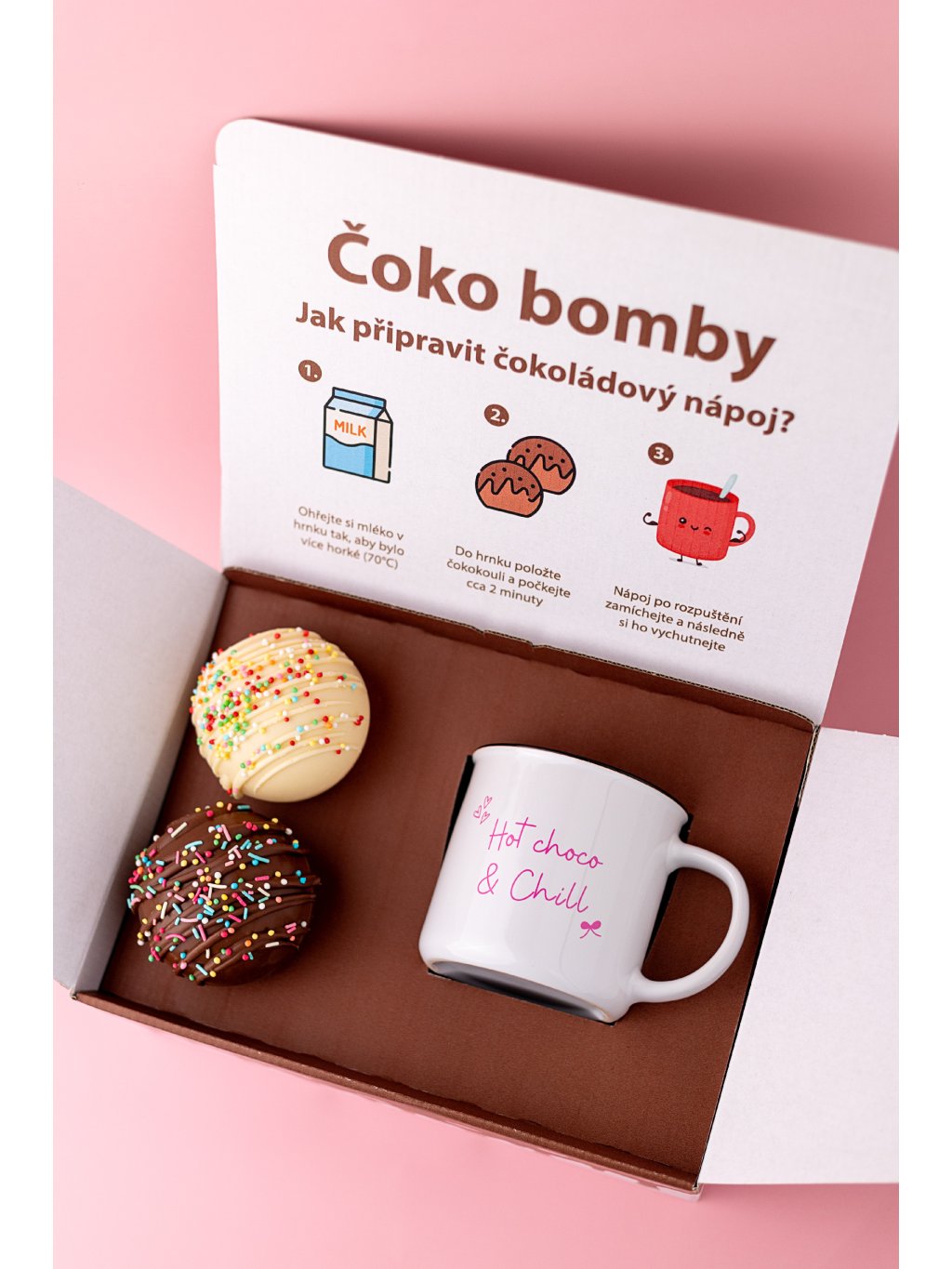 Dárková sada - 2 ks Čoko bomb + hrníček (Hot choco & Chill)