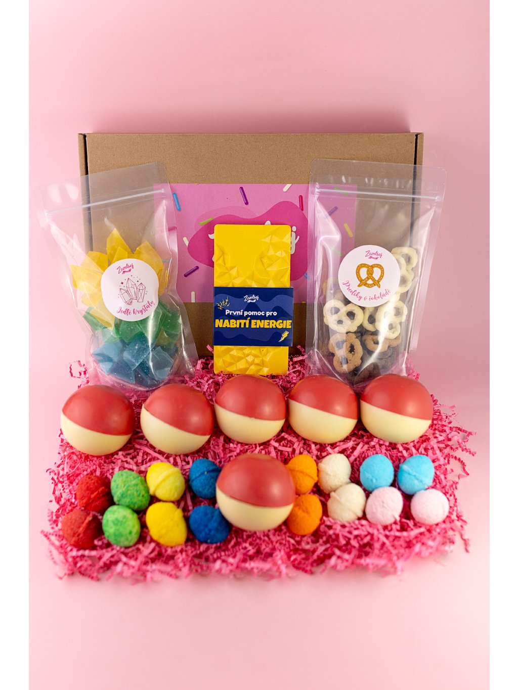Sada je plná našich ČESKÝCH ručně vyráběných sladkostí, jako jsou jedinečné Drinkové bomby, lahodná čokoláda, ovocné Jedlé krystaly a vyhlášené Čoko bomby.
