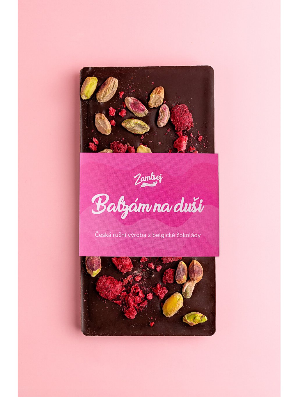 Nejkvalitnější hořká čokoláda bez kompromisů! Pouze poctivá čokoláda, maliny a pistácie.