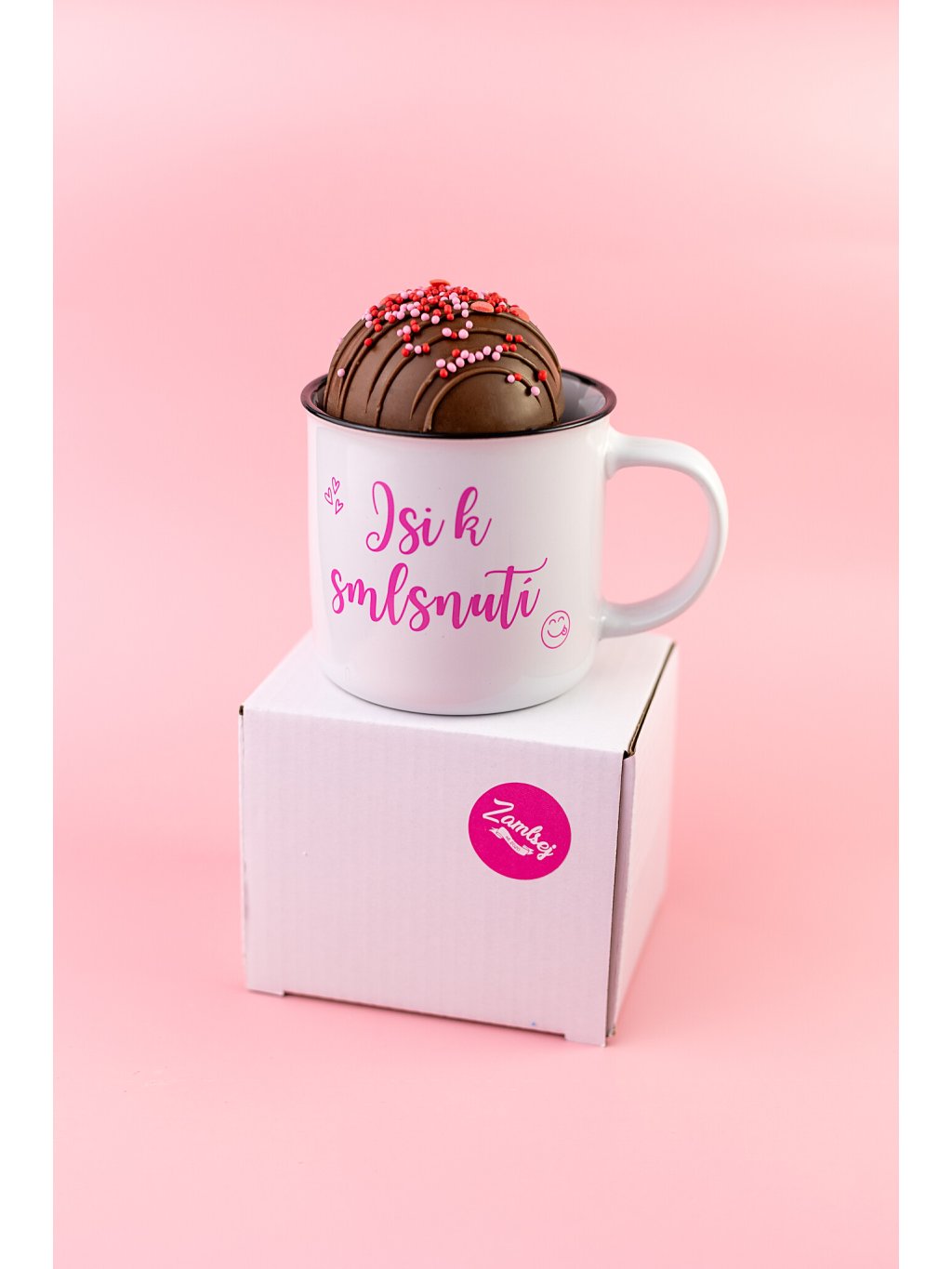 V nádherné dárkové krabičce se ukrývá roztomilý hrníček a v něm navíc ještě naše jedinečná Čoko bomba.