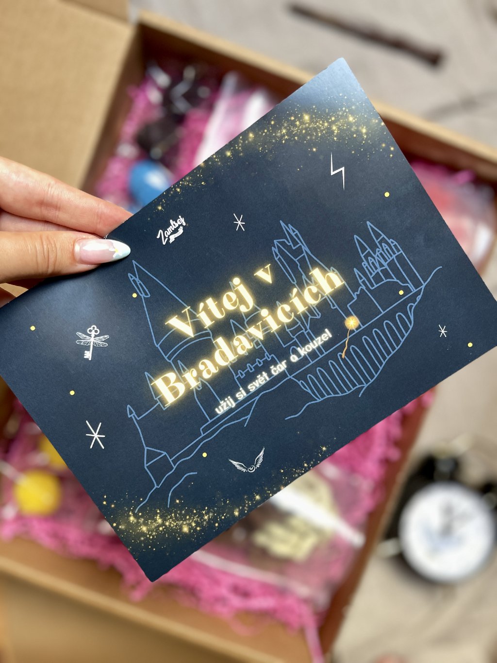 Vše zabalené v krásné dárkové krabičce s kartičkou "Vítej v Bradavicích".