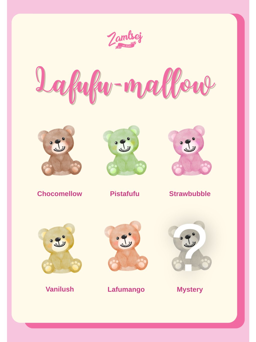 Každý sáček Lafufu-mallow ukrývá tajemnou příchuť. Zjistíš ji až ve chvíli, kdy otevřeš balení a zakousneš se do prvního medvídka.