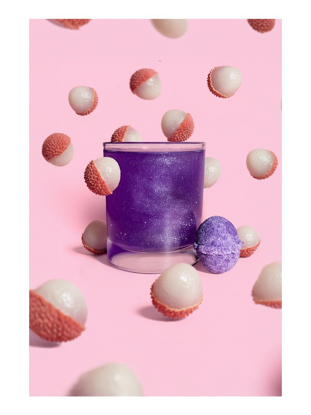 Složení příchuť Liči: cukr, kyselina citronová, jedlá soda, liči aroma, sukralóza, třpytky: Hlinitokřemičitan draselný (E555), Oxidy a hydroxidy železa (E172), Oxid křemičitý (E551), barvivo: E122* a E133*