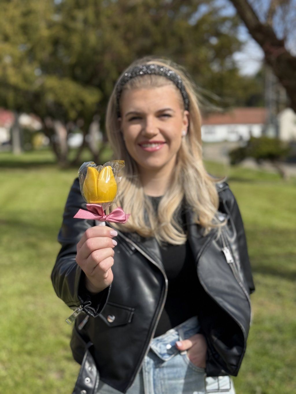 Roztomilý tulipán z sametově jemné čokolády plněná lahodným čokokrémem.