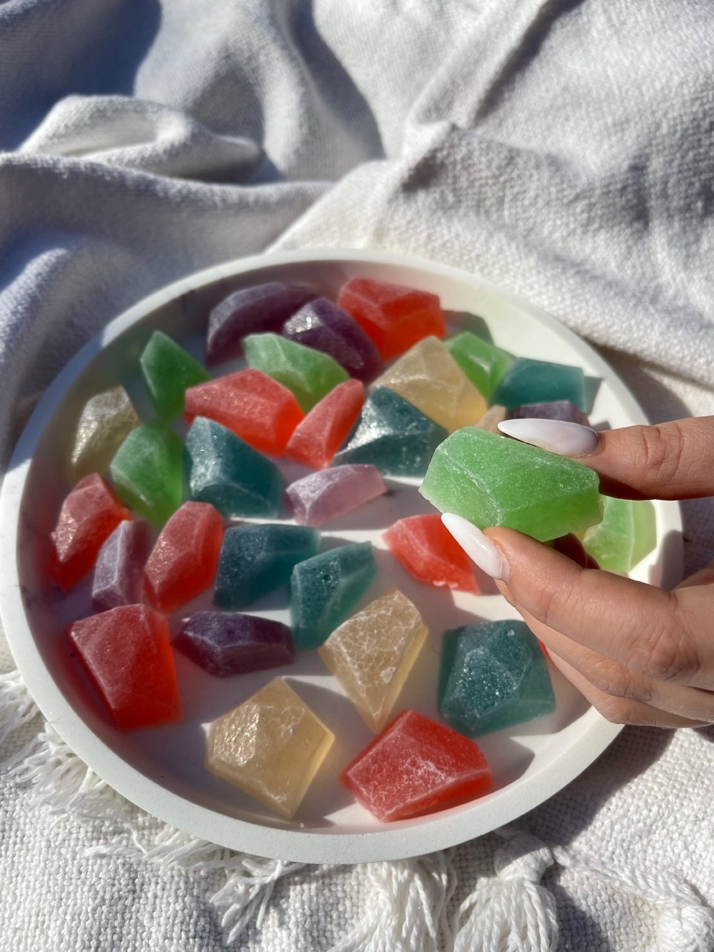 Naše Jedlé krystaly jsou na první pohled k nerozeznání od těch opravdových. Vlastnoručně je vyrábíme v naší rodinné české firmě a dáváme si opravdu záležet, aby měl každý z nich jedinečný vzhled a božskou chuť.