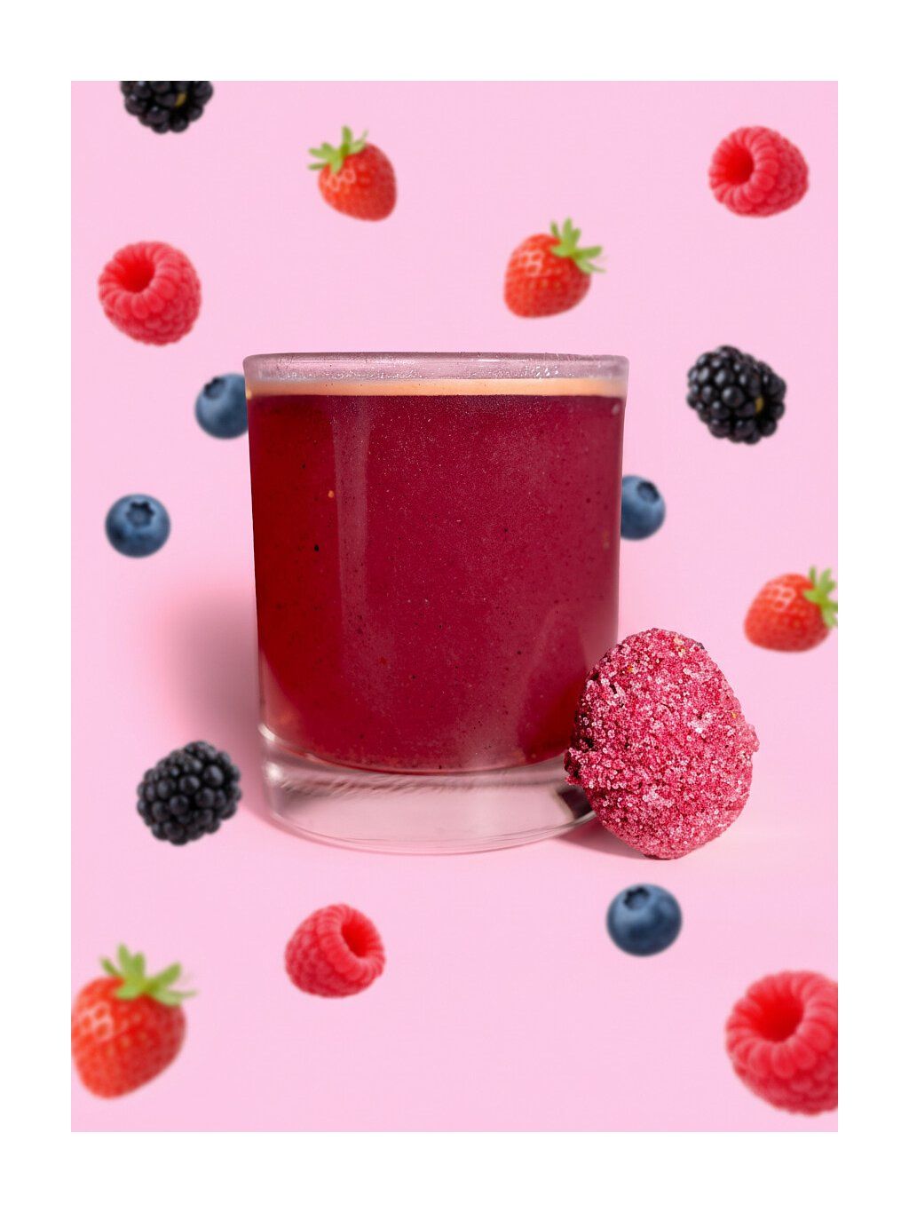 Složení Borůvka a multivitamín: cukr, 20 % lyofilizované borůvky, kyselina citronová, jedlá soda, multivitamín (bisglycinát hořečnatý, vitamin C, vitamin B3, vitamin E, bisglycinát, zinečnatý, vitamin B5, vitamin B6, vitamin B2, vitamin B1, bisglycinát manganatý, citrát měďnatý, vitamin A, vitamin B9, vitamin K2-MK7, vitamin B7, L-selenometionin, molybdenan sodný, pikolinát chromu, vitamin D3, vitamin B12), borůvkové aroma, sukralóza