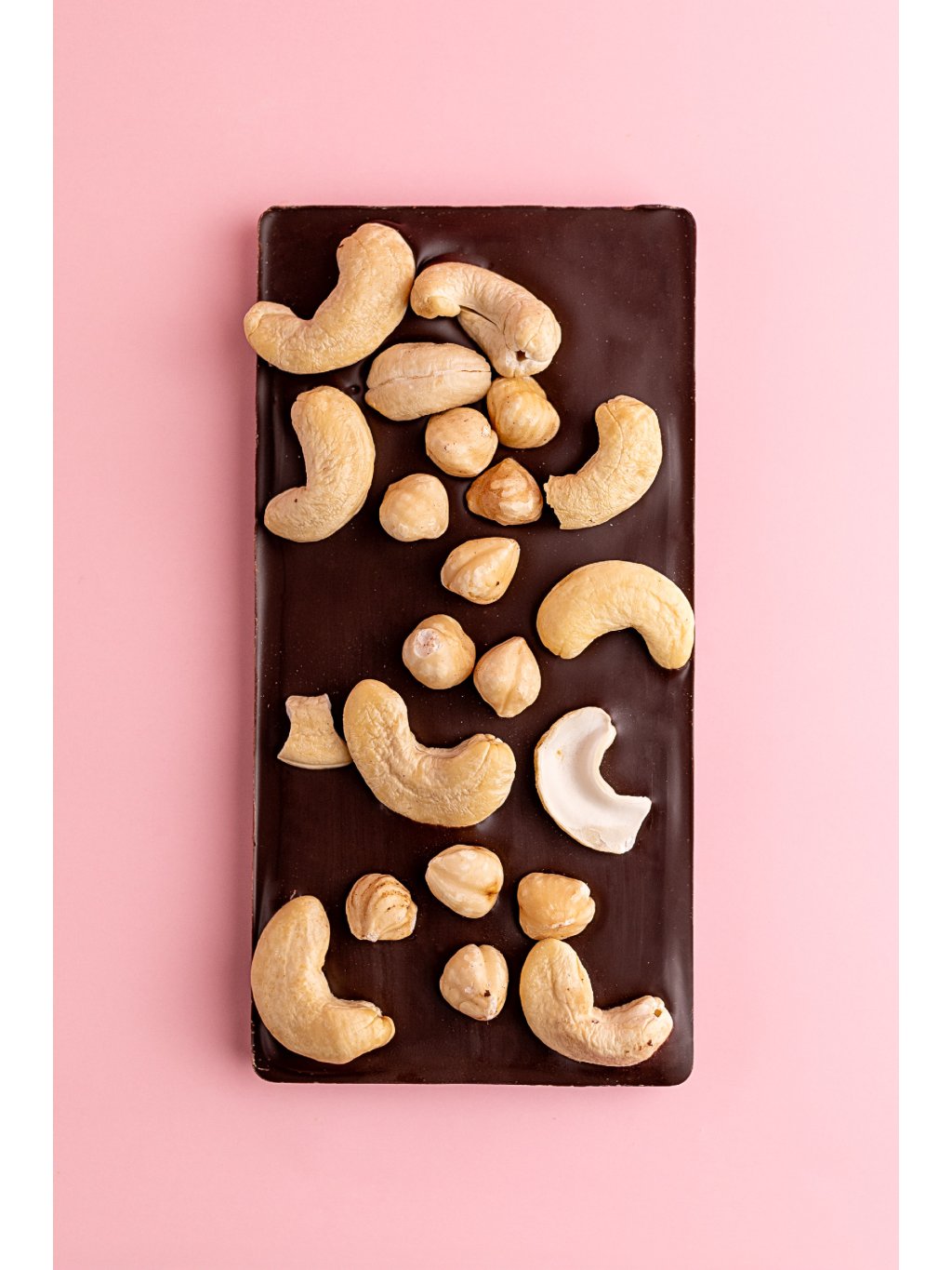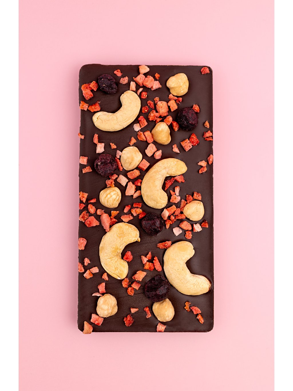 je vyrobená z prémiové belgické čokolády značky Belcolade a nejkvalitnějších kakaových bobů, oříšků a lyofilizovaného (mrazem sušeného) ovoce. Více informací o použitých surovinách najdeš -ZDE-