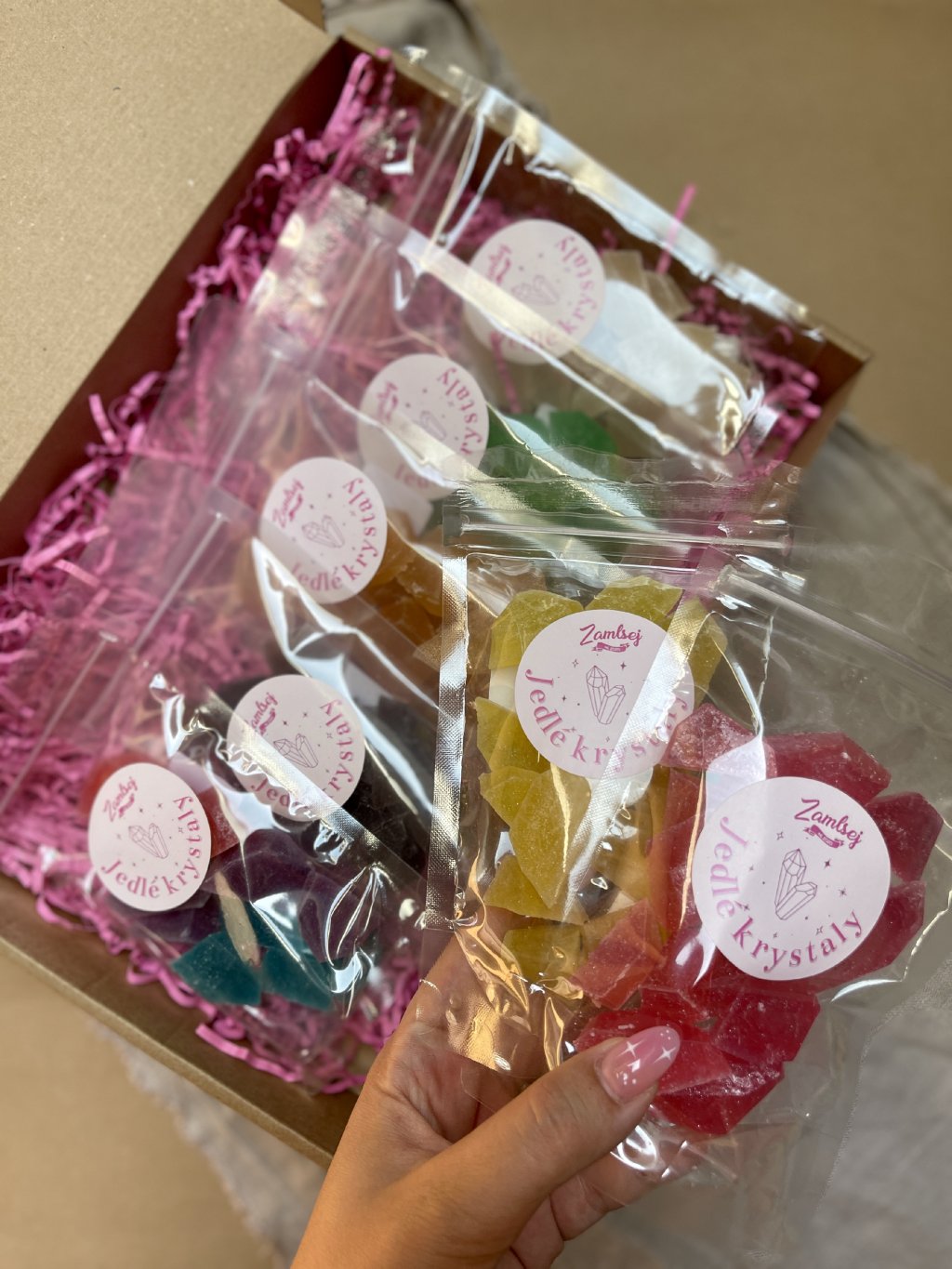 Jedlé krystaly vlastnoručně vyrábíme v naší ČESKÉ 🇨🇿 rodinné firmě na jižní Moravě. Naše práce nás opravdu baví.