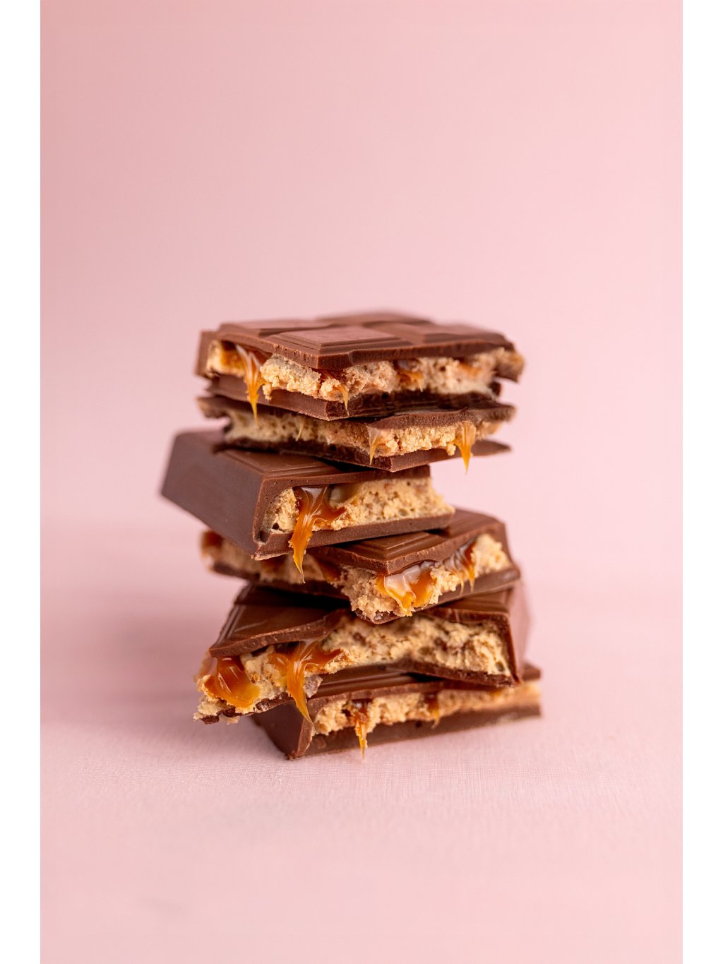 Náplň: Glukózový sirup, slazené zahuštěné odstředěné mléko, cukr, voda, kakaové máslo, modifikovaný škrob, barvivo: karamel, zahušťovadlo: agar-agar, aromata, mono- a diglyceridy mastných kyselin a slunečnicový lecitin, sorban draselný, rostlinný tuk (palmojádrový, kokosový, palmový), cukr, sušené plnotučné mléko, bílá čokoláda 10 % (sušené plnotučné mléko, cukr, kakaové máslo), sušené odstředěné mléko, sójový lecitin, aroma, rostlinný tuk (palmojádrový, kokosový, palmový), cukr, karamelizovaná bílá čokoláda 10 % (sušené odstředěné mléko, cukr, kakaové máslo, karamelizovaný cukr, bezvodý mléčný tuk, mořská sůl Fleur de sel), sušená syrovátka, sušené odstředěné mléko, karamelové inkluze 3 % (sušená syrovátka, bezvodý mléčný tuk, maltodextrin, sušené odstředěné mléko, cukr, karamelový cukrový sirup, modifikovaný škrob, zahušťovadlo: alginát sodný, přírodní aroma), bezvodý mléčný tuk, sójový lecitin, aroma.