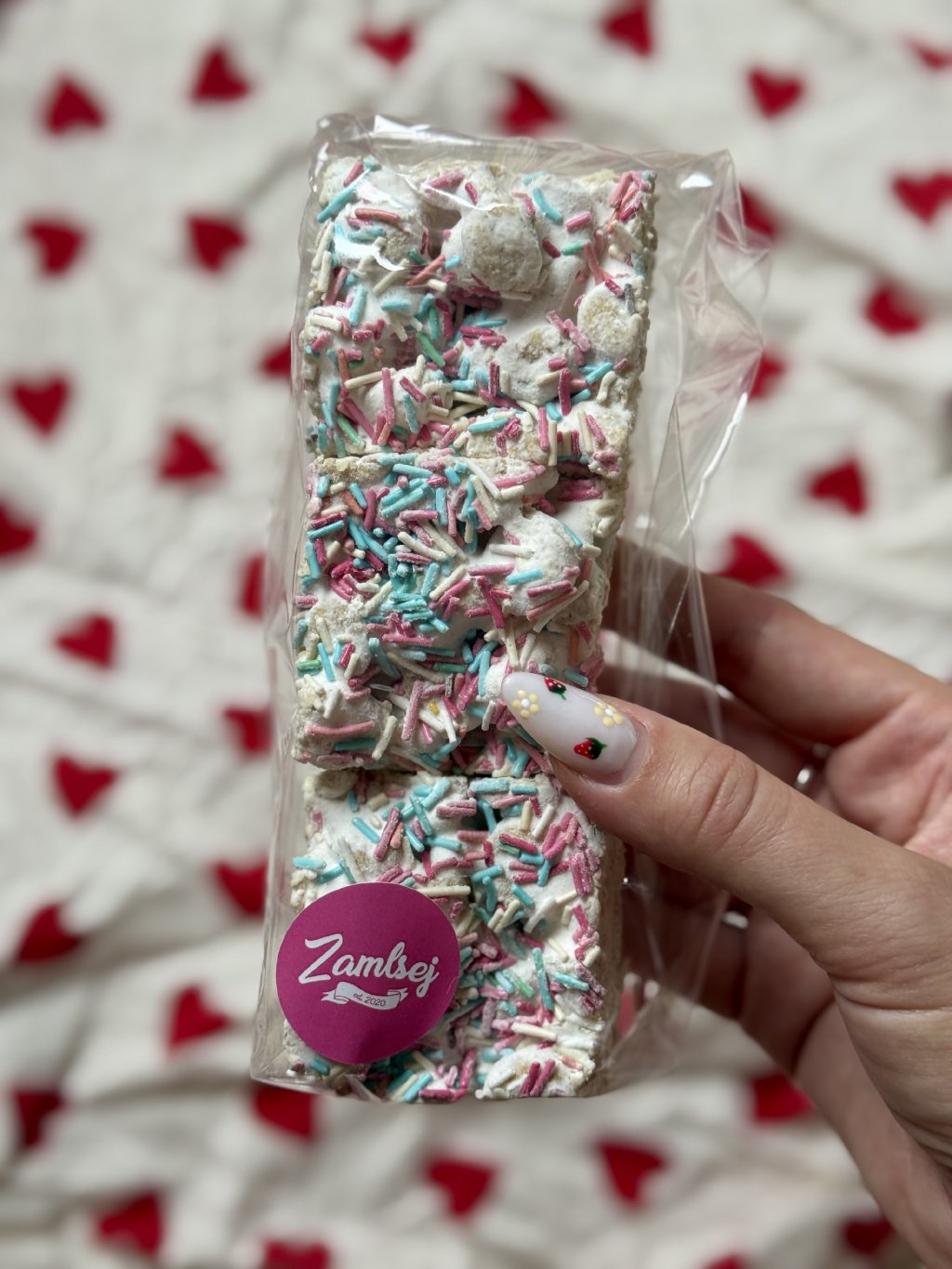 Spojili jsme měkký vanilkový marshmallow s hravými zdobítky a křupavými medovými kroužky! Vznikl tak sladký malý zázrak, který chutná přesně tak, jak vypadá: jako duhový sen s kapkou medové radosti. 🌈