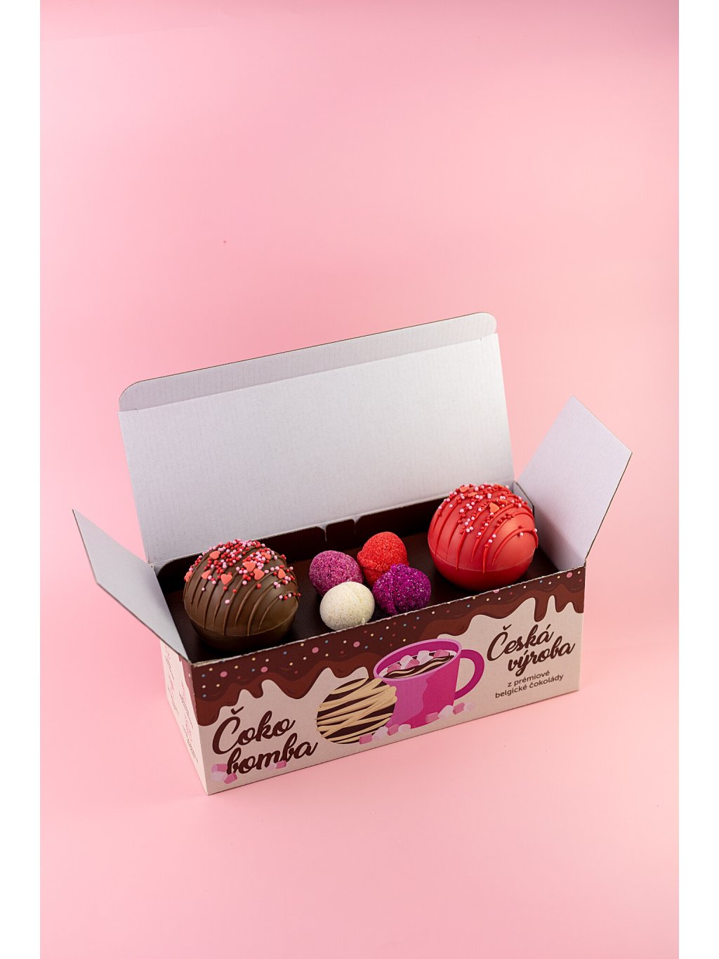 Sada je plná našich ČESKÝCH ručně vyráběných sladkostí, jako jsou jedinečné Drinkové bomby a vyhlášené Čoko bomby.
