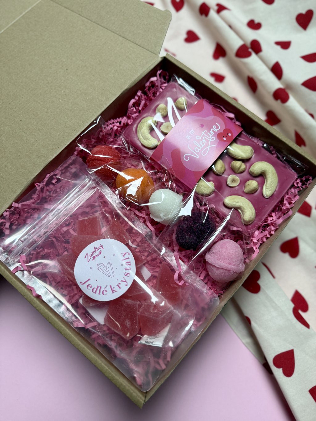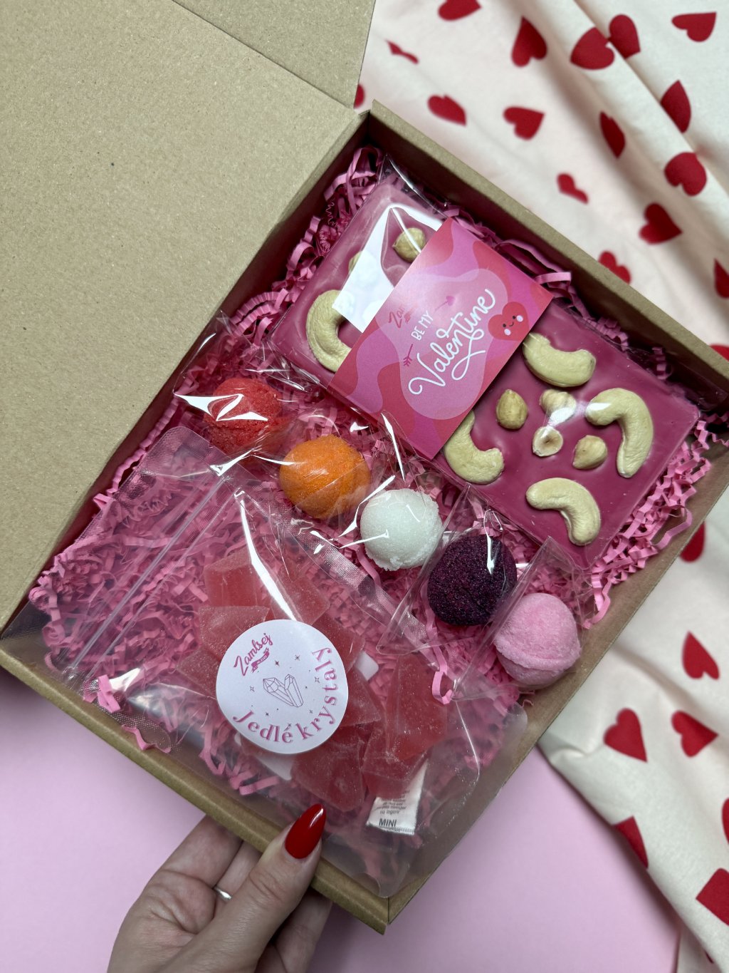 Sada je plná našich ČESKÝCH ručně vyráběných sladkostí, jako jsou jedinečné Drinkové bomby, lahodná čokoláda a ovocné Jedlé krystaly. A jako bonus dostaneš ještě roztomilé přání ZDARMA.