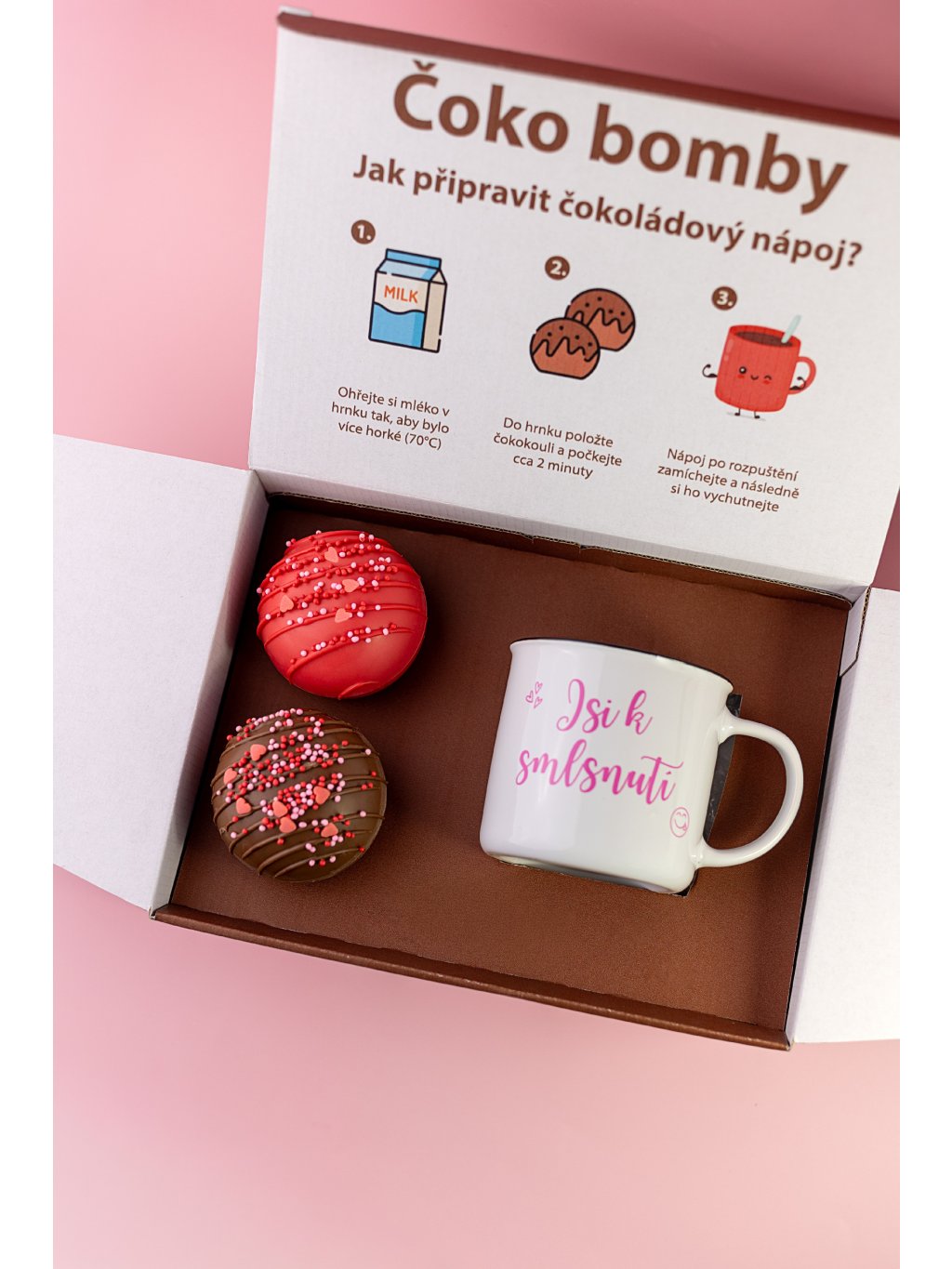 Valentýnská sada - 2 ks Čoko bomb + hrníček (Jsi k smlsnutí)